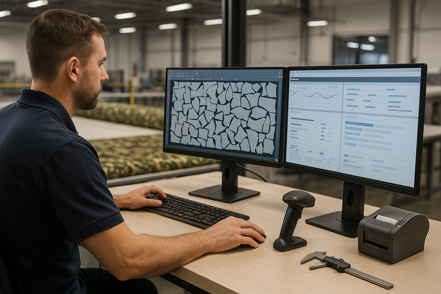 We manage the full lifecycle - starting with design support and requirements capture, translating client concepts into CAD-ready files. From there, we deliver rapid prototyping, material sourcing (IRR fabric, mil spec hardware), production planning, inline QA, NATO standard labelling, secure packing, and classified dispatch under NDA. Clients benefit from a single accountable partner with order visibility and proven KPIs, including 98% OTIF and 96% First Pass Yield. Complex defence requirements are streamlined into contract-ready product deliveries.